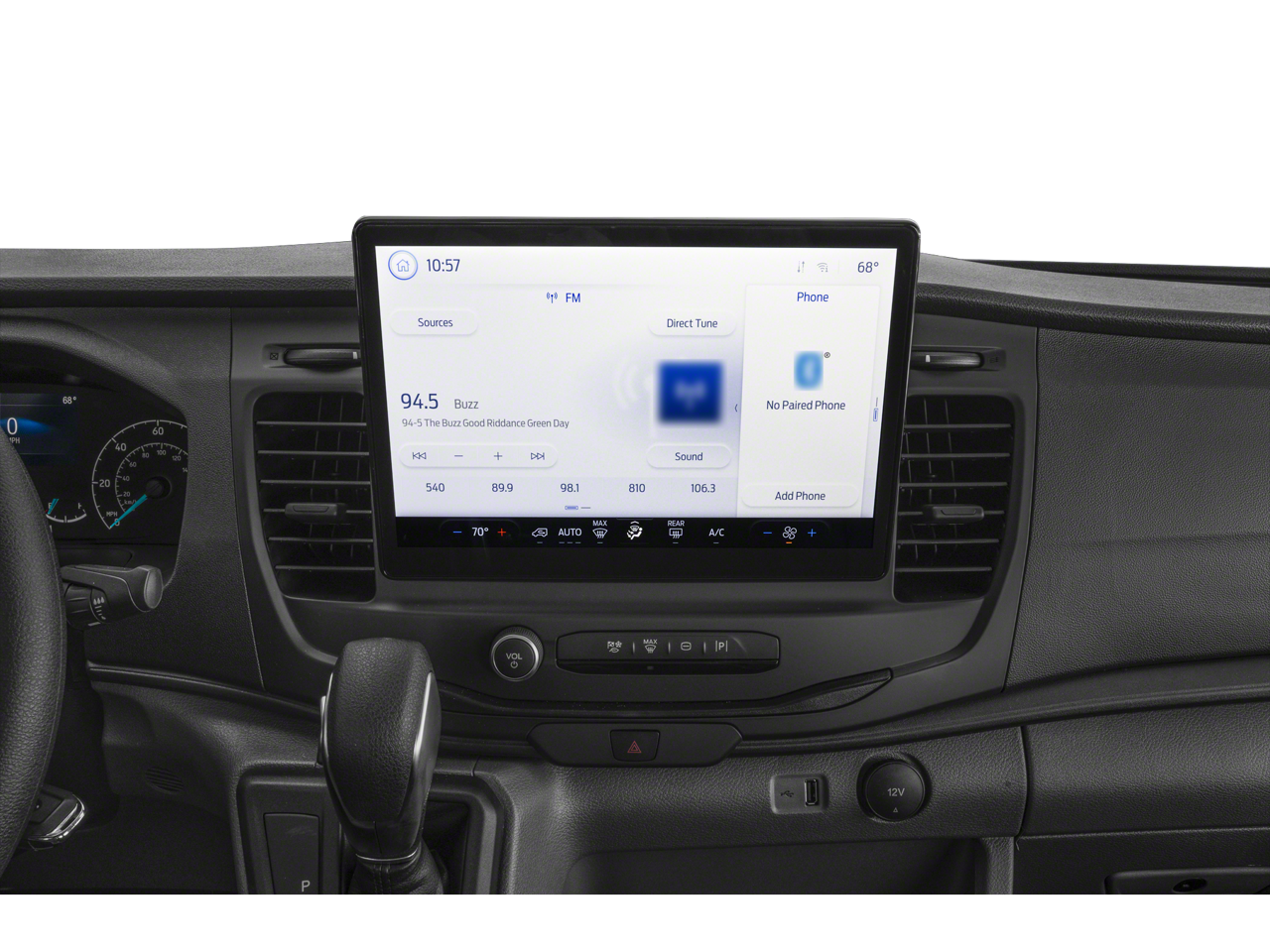 - Radio: AM/FM Stereo w/SYNC 4 & Nav -inc: 12" display, Bluetooth®, dual USB ports, embedded voice recognition, connected navigation (90 day trial) and 8 speakers (4 front/4 rear)