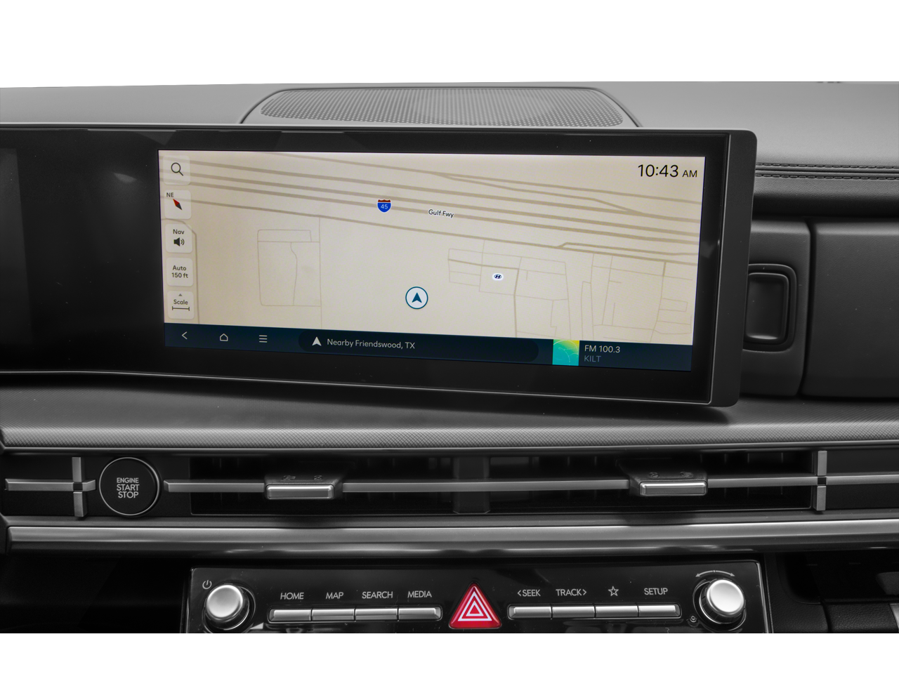 - Radio: AM/FM/HD Display Audio -inc: 6 speakers, 12.3" wide touchscreen display, Apple CarPlay, Android Auto, Bluetooth hands-free w/wireless audio streaming, dynamic voice recognition, USB connectivity, SiriusXM, Blue Link+ connected car system, over-the-air updating capability, navigation system including traffic flow w/incident data via HD Radio (HERE) and rear seat quiet mode